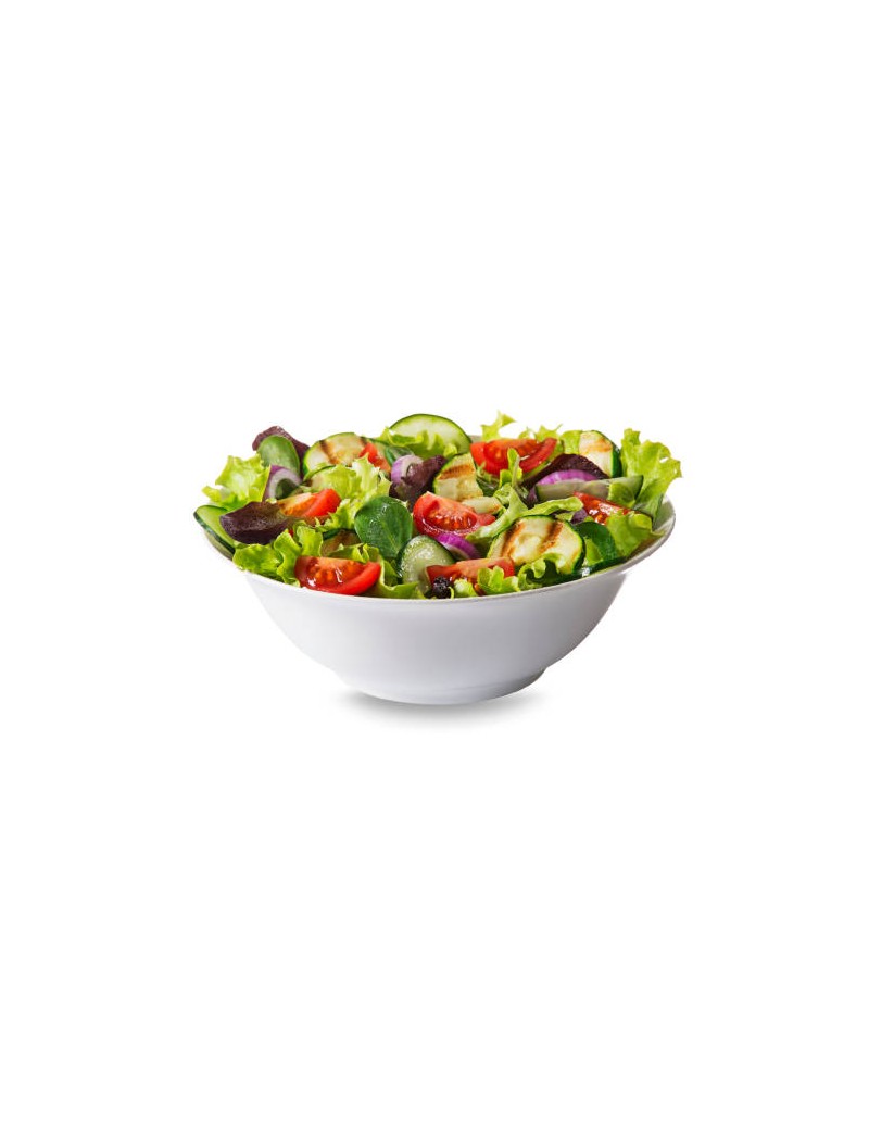 Salade verte, poulet, croutons de pains grillés, copeaux de parmesan, tomates cerises, oeuf dur, oignons rouges, sauce caesar, focaccia